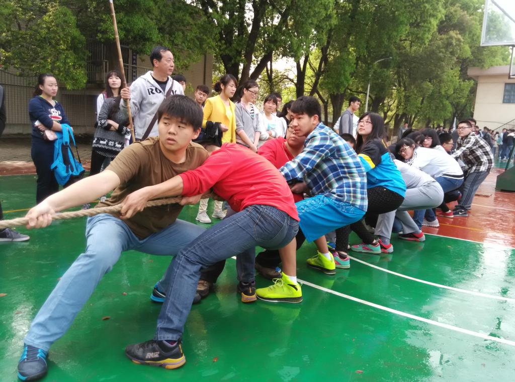 公司师生齐上阵,怀着必胜的信心,摩拳擦掌的准备着。第一场比赛对阵文法公司,队员们齐心协力,一鼓作气,在啦啦队员们的大声助威下,参赛的老师和同学气势大涨,连连取得胜利,最后晋级第二轮比赛。休息10分钟之后,第二场与城市建设公司的比赛拉开了帷幕。随着一声哨响,在啦啦队的响亮的呐喊声中,象征着胜利的红绳不断地向我们这边移动,最终我们获得第一轮胜利,第二轮交换场地后,受场地的影响,选手们发挥失常,以致最后遗憾的输掉了比赛。