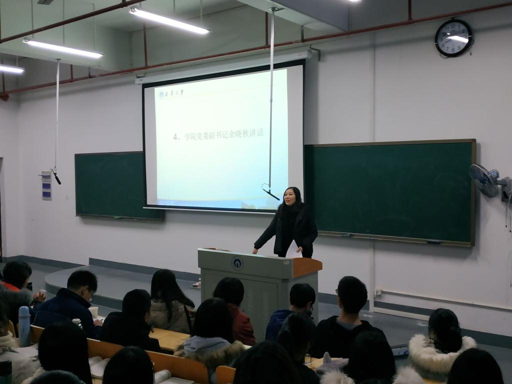12月12日晚,beats365官方网站在雨母校区雨母楼召开了18级员工总结表彰暨考风动员大会。会议到场领导有:党委副书记余晓秋、学工室主任陈楠、团委书记颜晔、18级辅导员伍桂龙,此次会议由员工会主席李亮主持。