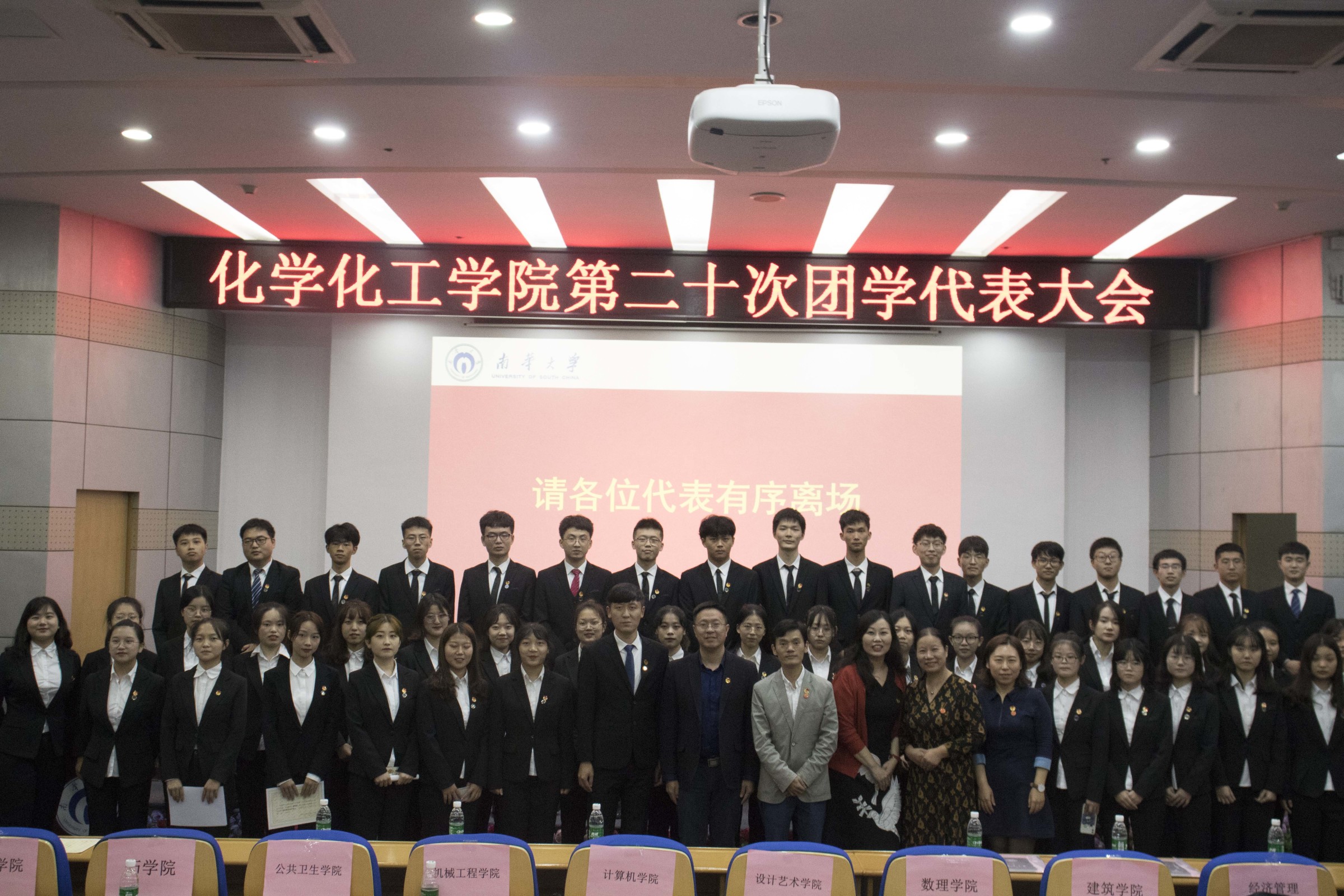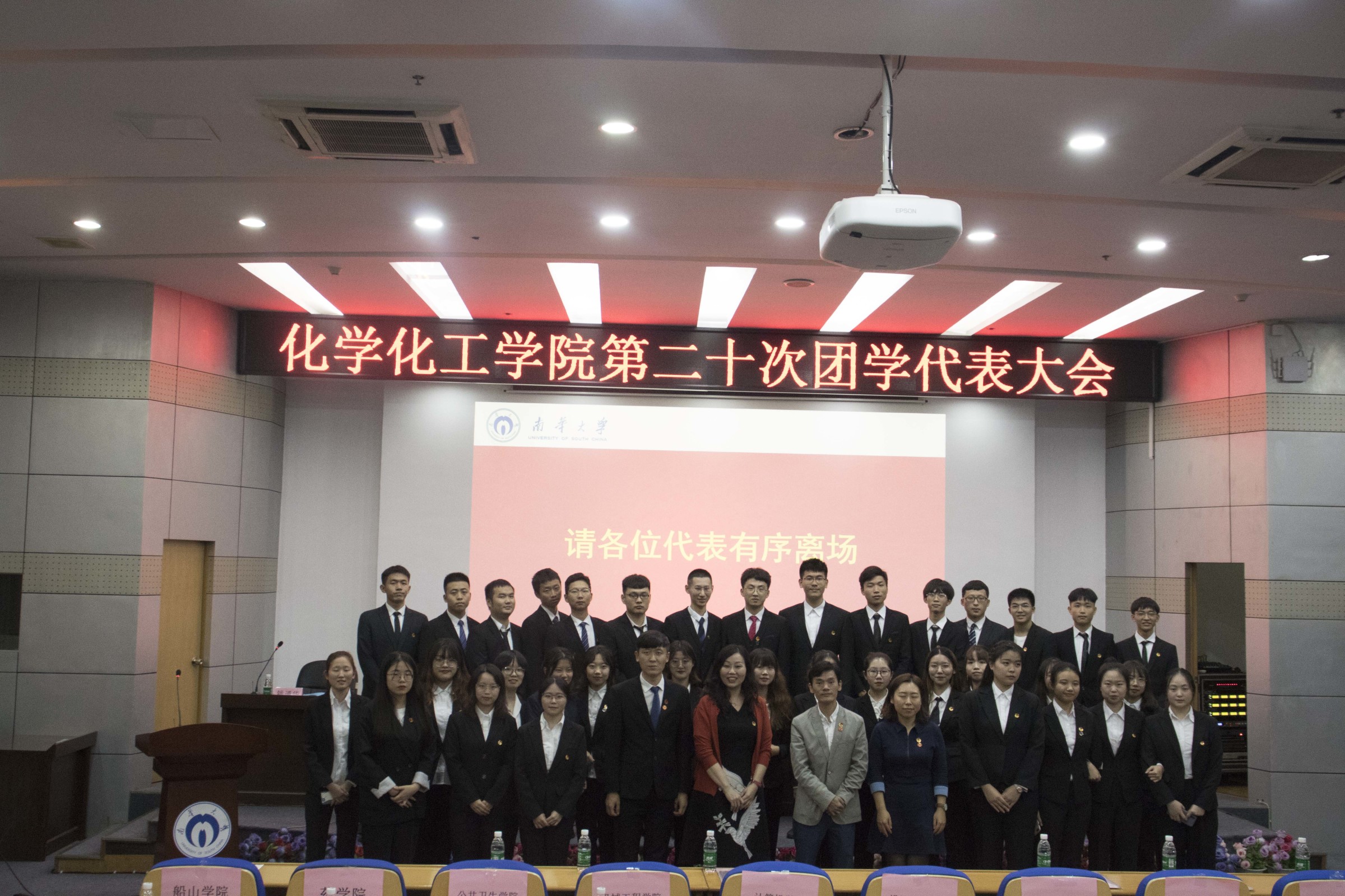 会议最后,全体奏唱共青团团歌,欢送领导、嘉宾及代表离场。第十九届、二十届团学干部合影留念,化工精神将会在新一届团委、员工会的工作中继续传承与弘扬。