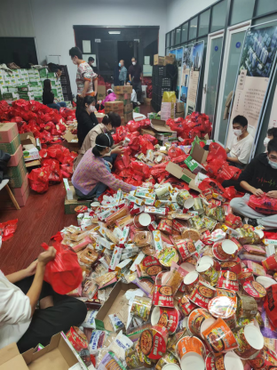 在公司相关负责人的带领下,志愿者们分组进行物资分装,井然有序,一丝不苟,高效率完成工作。