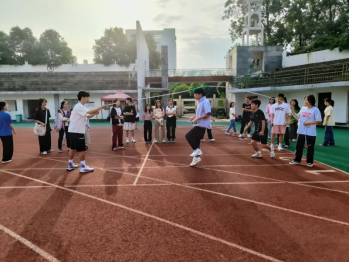 为了丰富校园文化生活,增强员工体质,培养员工合作意识,beats365官方网站于5月25日7:00在北校田径运动场举行团体花样跳绳比赛,公司各班自由组队参加比赛,公司团委书记马昭阳现场观赛。