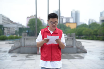 实践团队项目成员代表陈崟发言,他向全体同学发出号召,青年时代选择吃苦也就选择了收获,选择奉献也就选择了高尚,当代青年人要牢记殷殷嘱托,不负切切期望,要拿出“自找苦吃”的精气神,真正成长为可堪大用、能担重任的栋梁之材。