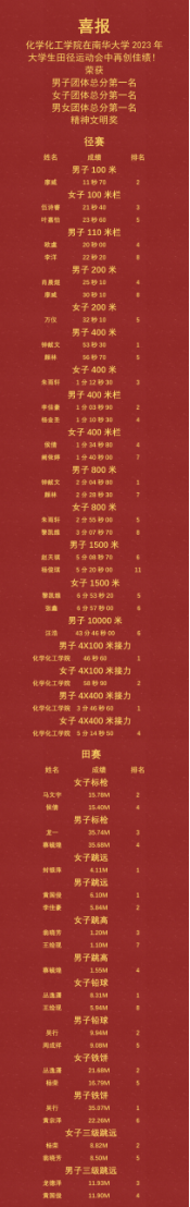 青春飞扬,梦想闪耀。化院学子以出色的成绩在大运会中绘出了一副波澜壮阔的图卷,他们斗志昂扬,活力无限,有着“初生牛犊不怕虎”的勇气,有着“长风破浪会有时,直挂云帆济沧海”的自信。未来是无限的,前途是广阔的,化院学子定会继续向前奔跑,弘扬体育精神,展现青春风采!