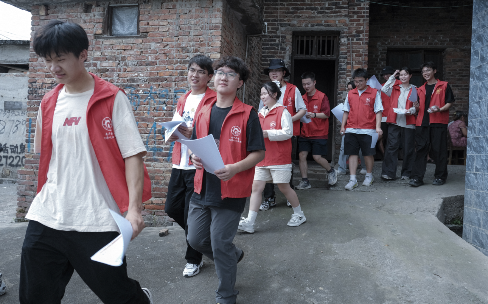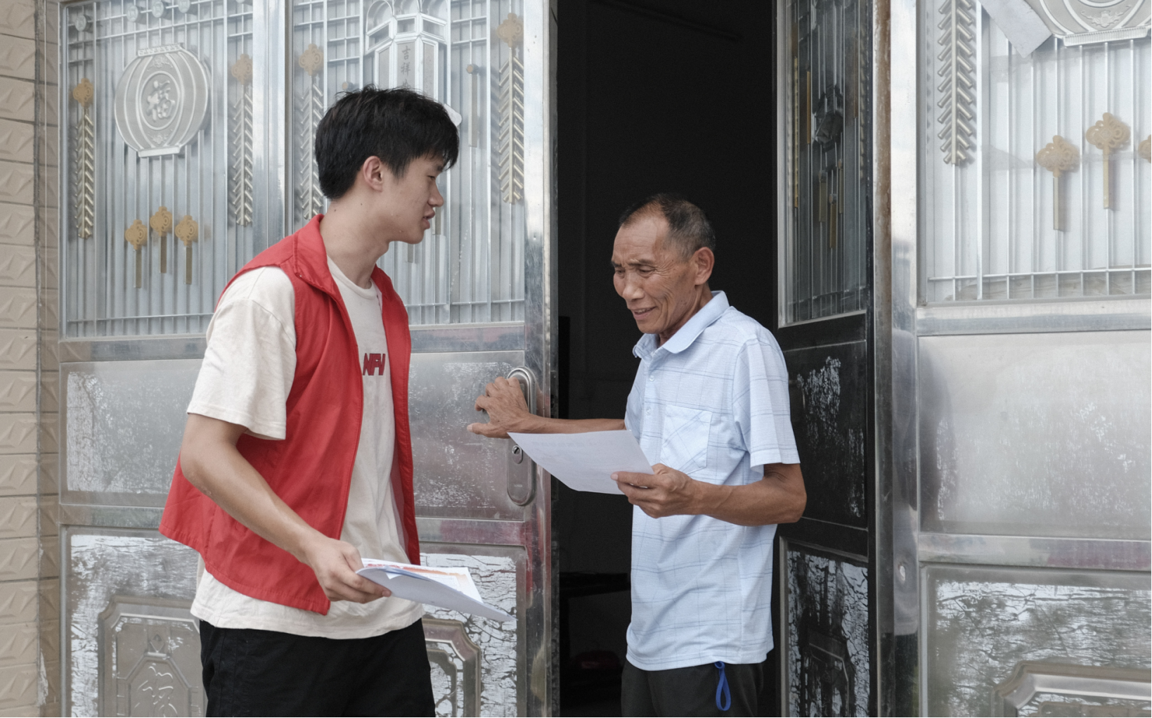 实践服务团成员们走进村民家中,调研乡村教育现状,发放资助政策宣讲材料,结合自身受资助经历讲好受助故事,传递资助力量。
