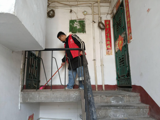 踏着清晨的阳光,志愿者们深入社区的每一个角落,开展清扫楼道卫生、宣传倡议等工作,劝阻不文明行为,为社区环境治理提出方法建议。参加活动的同学说:“通过此次志愿服务活动,收获了努力付出的乐趣。”