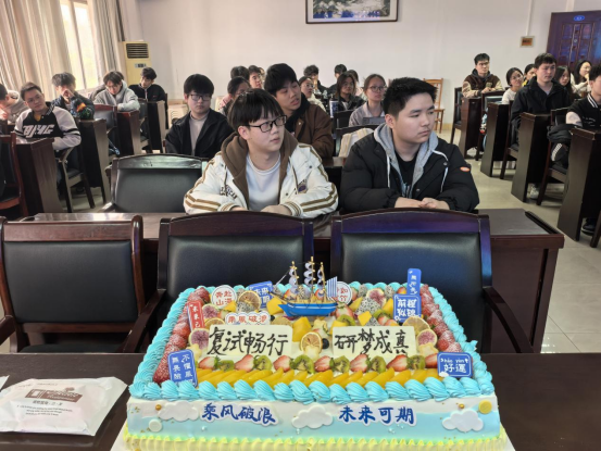会议最后,公司党委副书记余晓秋与学工室全体辅导员老师为现场同学分享祝福蛋糕,并祝愿同学们复试畅行,研梦成真!