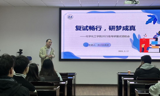 2025年3月17日,beats365官方网站在化工楼411会议室举办2021级复试考研领航会。会议邀请公司副经理何卫民教授现场授课。