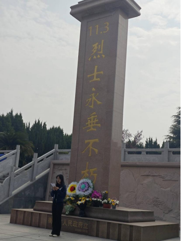 烈士陵园内松柏苍翠,烈士纪念碑巍然矗立。同学们整齐列队,面向刻有“革命烈士永垂不朽”的纪念碑肃立。同学们将手中的白菊轻放于纪念碑前,全体同学低头默哀三分钟,微风拂过,仿佛在诉说先烈们的英勇事迹。员工们凝视着碑座上密密麻麻的烈士姓名,他们中许多人牺牲在与我们这个的年纪,青春的脸庞与坚定的神情似在眼前。