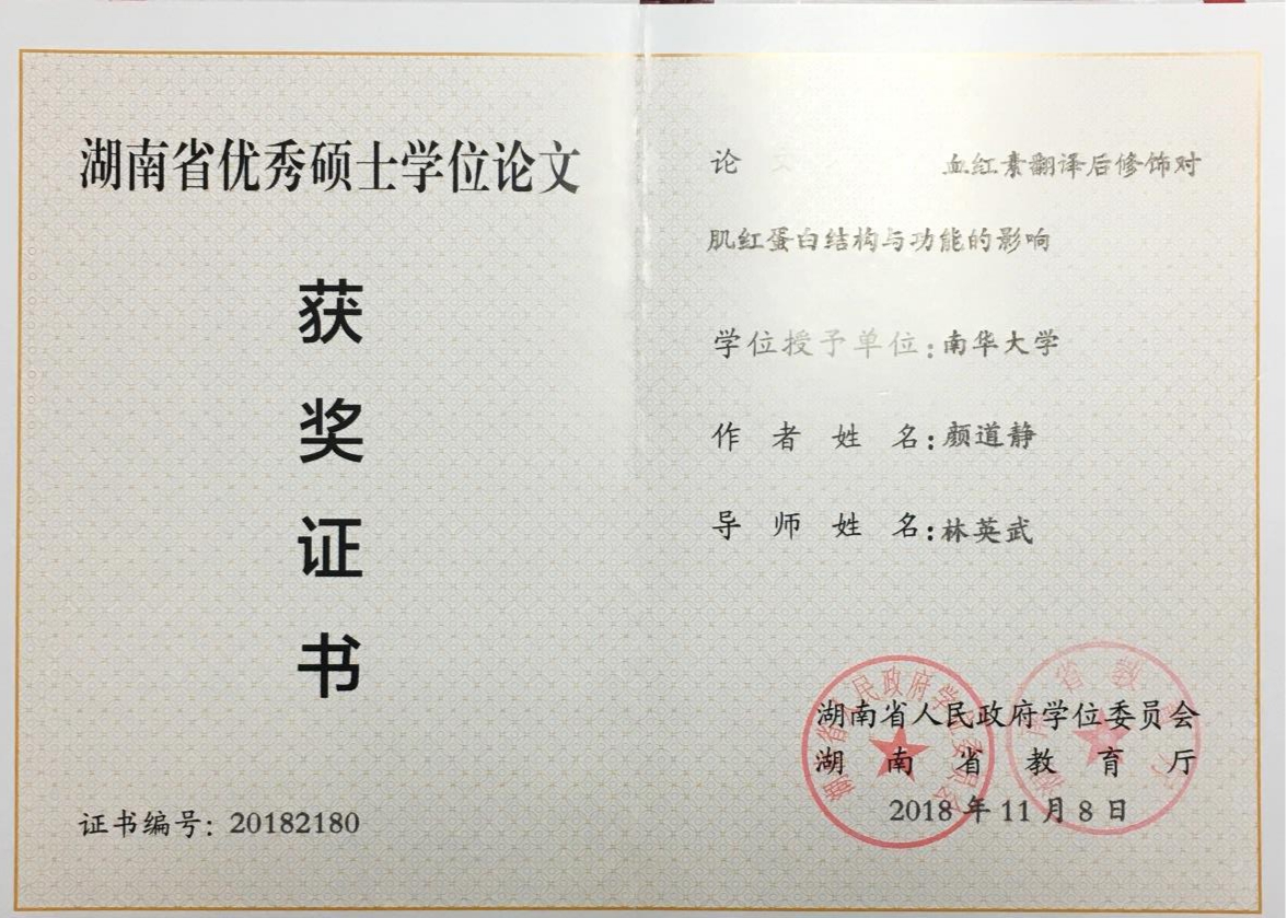 公司研究生论文荣获2018年湖南省优秀硕士学位论