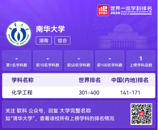 公司化学工程学科成功上榜,位列世界排名301-400位、中国(内地)排名141-171位。