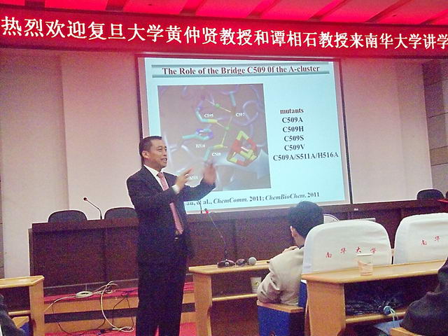 首先,黄教授以血红蛋白的结构和功能及老年痴呆症相关蛋白的研究展开论述。黄教授在讲学过程中,以自己的亲身经历为例,并结合自己员工在蛋白酶方面的突出成就,详细阐明了血红蛋白的结构、功能对老年痴呆症的影响,并强调了生物化学的研究在人类抵抗疾病过程中起到的关键作用。随后,谭教授以生理、病理过程中重要金属蛋白、金属酶为主题,阐述了金属蛋白及金属酶的特性,对其研究方法和研究目标做了深层次的分析,并以乙酰辅酶A合成酶为例,讲述金属酶对人类疾病的影响。最后,两位教授就师生的疑问作了详细讲解,鼓励后辈们要勤于学习,勇于探索自然的奥秘。至此,此次讲座圆满结束。