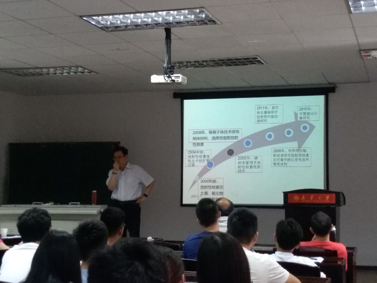 在此次报告中,王祥科教授介绍了重金属离子和放射性核素在环境中的化学行为研究、纳米材料功能化修饰及对环境目标污染物治理方面、等离子体技术制备纳米材料并应用于能源和环境领域研究,使在座师生受益匪浅。