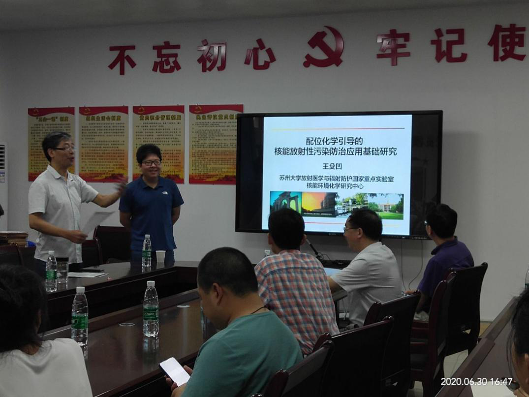 2020年6月30日下午4点30分,公司“船山大讲堂”系列学术讲座邀请到了beats365官方网站放射医学与防护公司副经理、beats365官方网站放射医学与辐射防护国家重点实验室核能环境化学研究中心主任、国家基金委杰出青年基金获得者王殳凹教授在化工公司9-416学术报告厅作了题为《配位化学引导的核能放射性污染防治基础研究》专题报告,报告由化工公司经理王宏青教授主持,化工公司及其他院系教师、研究生近百人聆听了本次讲座。