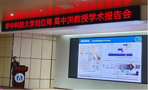 本次报告中,刘红梅教授介绍了人体内的硒蛋白及其作用,并详解了硒蛋白F对Ⅰ类糖尿病以及Ⅱ类糖尿病分别起到不同的作用,最后还普及了如何正确在日常生活中摄入硒蛋白这类微量元素;高中洪教授主要介绍了酪氨酸硝基化和酪氨酸氨基化对beta淀粉样蛋白性质的影响。简单介绍了阿尔兹海默症(AD)与Aβ斑块的研究现状,详细讲解了酪氨酸硝基化和酪氨酸氨基化对Aβ42形成纤维化的抑制作用。刘红梅教授、高中洪教授的生动讲解与介绍激发了在座师生的兴趣。会后,参会的老师和同学积极提问,踊跃发言,双方进行了交流,刘红梅教授、高中洪教授就同学们提出的问题耐心地为大家进行了细致的解答,取得了良好的反响。