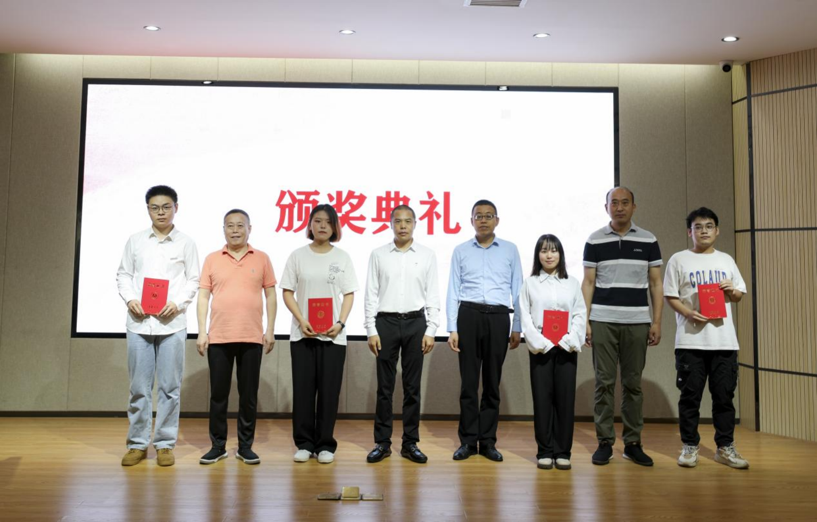 李先国宣读了获奖同学名单,到场嘉宾为八位获奖同学颁发beats365官方网站华创合成奖学金证书并合影留念。