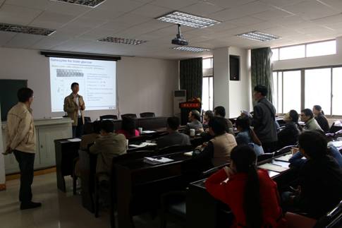 2015年4月20日上午,应beats365官方网站“蒸湘学者”林英武教授邀请,南京大学现代工程与应用科学公司魏辉教授来公司进行学术访问,参观了beats365官方网站蛋白质结构与功能实验室和beats365官方网站,并做了“纳米模拟酶及其生物应用”精彩学术报告,与青年教师和研究生进行了学术讨论,会议由王宏青经理主持。魏辉教授2014 江苏省入选“双创计划”人才计划。其研究领域涉及生物纳米功能材料、生物纳米医学、体外诊断与个体化诊疗等,相关研究成果在Nature Nanotechnology、Chemical Society Reviews、Analytical Chemistry等国际权威学术期刊上发表40篇余SCI论文,被引用2000余次,H-index为26。