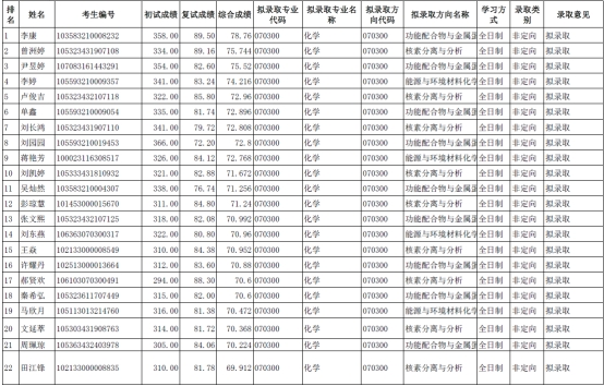 按照公司及公司研究生招生工作的复试方案,根据2023410-11日的复试成绩排名,现公布最终拟录取名单如下。研招网发送录取通知如超过12小时未确认视为放弃,将自动按综合排名中暂不录取人员进行替补。对复试成绩及上述同学的建议录取有异议,请以书面形式于2023426日前向公司反映。反映情况要实事求是,具体真实,署真实姓名,以便调查核实。电话:0734-8282375,联系人:王老师。